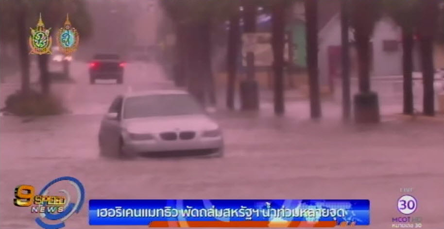 สหรัฐ 9 ต.ค. – พายุเฮอริเคนแมทธิวพัดเข้าถล่มรัฐเซาท์แคโรไลนา ทำให้เกิดอุทกภัยในพื้นที่ ก่อนอ่อนกำลังลงและเคลื่อนตัวไปทางชายฝั่งด้านตะวันออก โดยทำให้บริเวณชายฝั่งด้านตะวันตกเกิดน้ำท่วมขังบนพื้นผิวถนน ป้ายจราจรล้มระเนระนาด รวมทั้งเกิดไฟฟ้าดับ สำนักงานพยากรณ์อากาศของสหรัฐ เตือนว่า แม้เฮอริเคนแมทธิวอ่อนกำลังลง แต่ยังเป็นอันตรายต่อชีวิตได้ ขณะที่ประธานาธิบดีบารัค โอบามา ประกาศภาวะฉุกเฉินในรัฐฟลอริดาและจอร์เจีย รวมถึงรัฐเซาท์แคโรไลนา และนอร์ทแคโรไลนา. -สำนักข่าวไทย