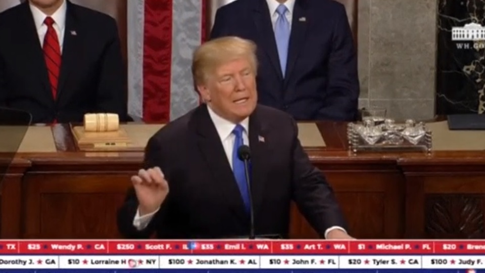 เว็บไซต์ secure.donaldjtrump.com ที่รณรงค์หาเสียงให้ทรัมป์ชิงตำแหน่งประธานาธิบดีสมัยหน้า เชิญชวนผู้สนับสนุนว่า จะได้เห็นชื่อตัวเองปรากฏบนหน้าเว็บขณะที่มีการถ่ายทอดสดการแถลงนโยบายประจำปีต่อรัฐสภา เป็นการเคลื่อนไหวที่ไม่ใช่ของคนใดคนหนึ่ง แต่เป็นของทุกคน ชื่อผู้สนับสนุนจึงสมควรได้รับการแสดงผู้คนได้เห็นระหว่างการแถลงดังกล่าว