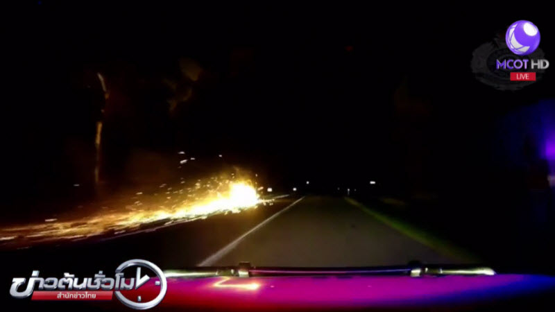 ออสเตรเลีย 31 ม.ค. – ภาพจากกล้องหน้ารถตำรวจรัฐควีนส์แลนด์ของออสเตรเลีย เผยให้เห็นเหตุไฟไหม้บริเวณด้านท้ายรถพ่วงคันหนึ่งที่แล่นไปตามทางหลวงด้วยความเร็ว ขณะที่เศษสิ่งของที่หล่นลงมาจากรถ ทำให้เกิดประกายไฟกระเด็นไปทั่วท้องถนน และยังทำให้เกิดไฟไหม้ทุ่งหญ้าริมทางหลายจุดตามทางที่รถแล่นผ่าน ตำรวจเผยว่า รถพ่วงคันดังกล่าวไม่มีล้อ และถูกรถบรรทุกลากไปกับพื้นถนนเป็นระยะทาง 20 กิโลเมตร โดยคนขับรถเป็นชายวัย 49 ปี ซึ่งให้ความร่วมมือกับตำรวจในการสอบสวนเป็นอย่างดี. – สำนักข่าวไทย