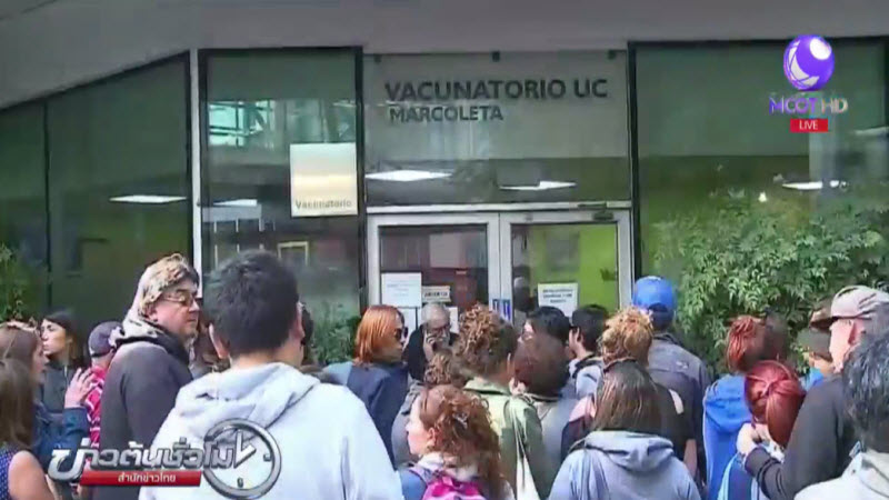 31 ม.ค. – ชาวชิลีพากันไปต่อคิวรอรับการฉีดวัคซีนป้องกันไข้เหลือง ก่อนจะเดินทางไปบราซิล ซึ่งกำลังเผชิญสถานการณ์แพร่ระบาดของโรคดังกล่าว องค์การอนามัยโลก ยืนยันว่า ในช่วงไม่กี่สัปดาห์นี้ การแพร่ระบาดของไข้เหลืองในบราซิลเพิ่มขึ้นถึง 3 เท่าตัว มีผู้เสียชีวิตแล้วอย่างน้อย 20 ราย นับตั้งแต่เดือนกรกฎาคมปีที่แล้ว โดยรัฐเซาเปาโล สถานการณ์รุนแรงที่สุด มีผู้เสียชีวิต 11 ราย พร้อมเตือนให้ชาวต่างชาติที่จะเดินทางไปบราซิล ควรฉีควัคซีนป้องกันก่อน. – สำนักข่าวไทย