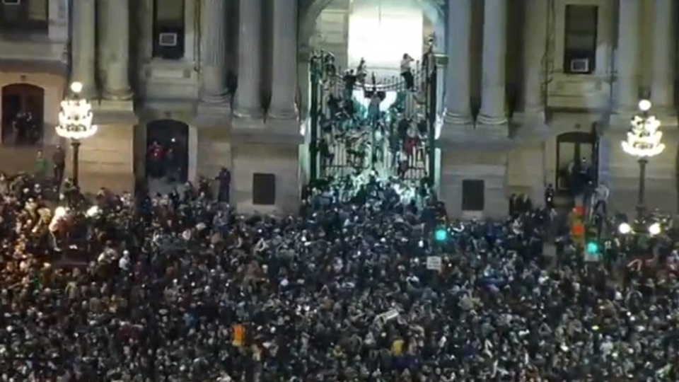 ฟิลาเดลเฟีย 5 ก.พ.- แฟน ๆ ทีมฟิลาเดลเฟียอีเกิลส์พากันฉลองชัยที่ทีมในดวงใจคว้าถ้วยซูเปอร์โบวล์เป็นครั้งแรกตั้งแต่ตั้งทีมเมื่อปี พ.ศ.2476 แต่บางคนก่อเหตุวุ่นวายจนตำรวจปราบจลาจลต้องออกมาควบคุมสถานการณ์