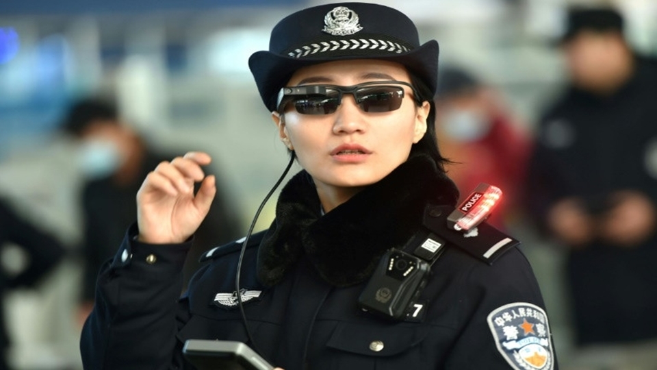 หนังสือพิมพ์พีเพิลเดลีของจีนรายงานว่า ตำรวจ 4 นายที่ประจำอยู่บริเวณทางเข้าสถานีรถไฟสายตะวันออกของเมืองเจิ้งโจว เมืองเอกของมณฑลเหอหนาน ทางตอนกลางค่อนตะวันออกของจีนได้สวมแว่นกันแดดพิเศษติดกล้องเชื่อมกับอุปกรณ์คล้ายสมาร์ทโฟน ทำให้สามารถถ่ายภาพใบหน้าผู้ต้องสงสัยแล้วเปรียบเทียบกับภาพในฐานข้อมูลของสำนักงานตำรวจ แอปพลิเคชันนี้จะแจ้งข้อมูลสำคัญ เช่น ชื่อนามสกุล เชื้อชาติ เพศ ที่อยู่ ให้ผู้สวมแว่นรู้ นอกจากนี้ยังบอกได้ด้วยว่าบุคคลนี้หลบหนีการจับกุมของทางการอยู่หรือไม่ รวมไปถึงที่พักโรงแรมและข้อมูลการใช้อินเทอร์เน็ต รายงานอ้างตำรวจเมืองเจิ้งโจวว่า แว่นกันแดดไฮเทคนี้ช่วยให้จับกุมผู้ต้องสงสัยก่ออาชญากรรมได้แล้ว 7 คน และผู้ใช้บัตรประชาชนปลอมอีก 26 คน แม้ว่าบุคคลเหล่านี้ปะปนอยู่กับฝูงชนที่กำลังเดินทางกันอย่างรีบเร่งในช่วงเทศกาลตรุษจีนก็ตาม