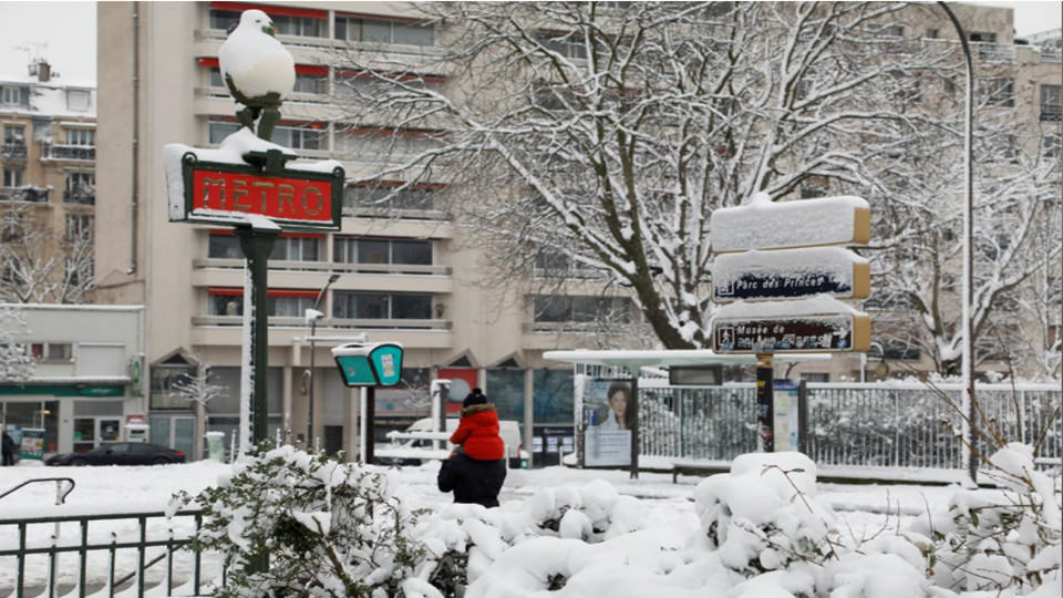 หอไอเฟลที่เป็นสัญลักษณ์ของกรุงปารีสและสถานที่ท่องเที่ยวยอดนิยมปิดตั้งแต่บ่ายวันอังคารก่อนหิมะตกหนัก มีคำเตือนว่าสภาพอากาศจะหนาวจัดต่อไปอีกหลายวันเพราะมีพายุหิมะ โดยคาดว่าอุณหภูมิในคืนวันพฤหัสบดีอาจติดลบ 7 องศาเซลเซียส.-สำนักข่าวไทย