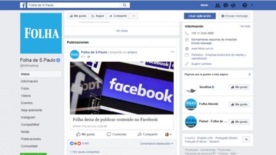 เซาเปาโล 9 ก.พ.- หนังสือพิมพ์ยักษ์ใหญ่ที่สุดของบราซิลจะเลิกเผยแพร่ข่าวทางเฟซบุ๊ก หลังจากเฟซบุ๊กประกาศจะให้ความสำคัญกับโพสต์ที่เป็นเนื้อหาส่วนตัวของผู้ใช้มากขึ้น