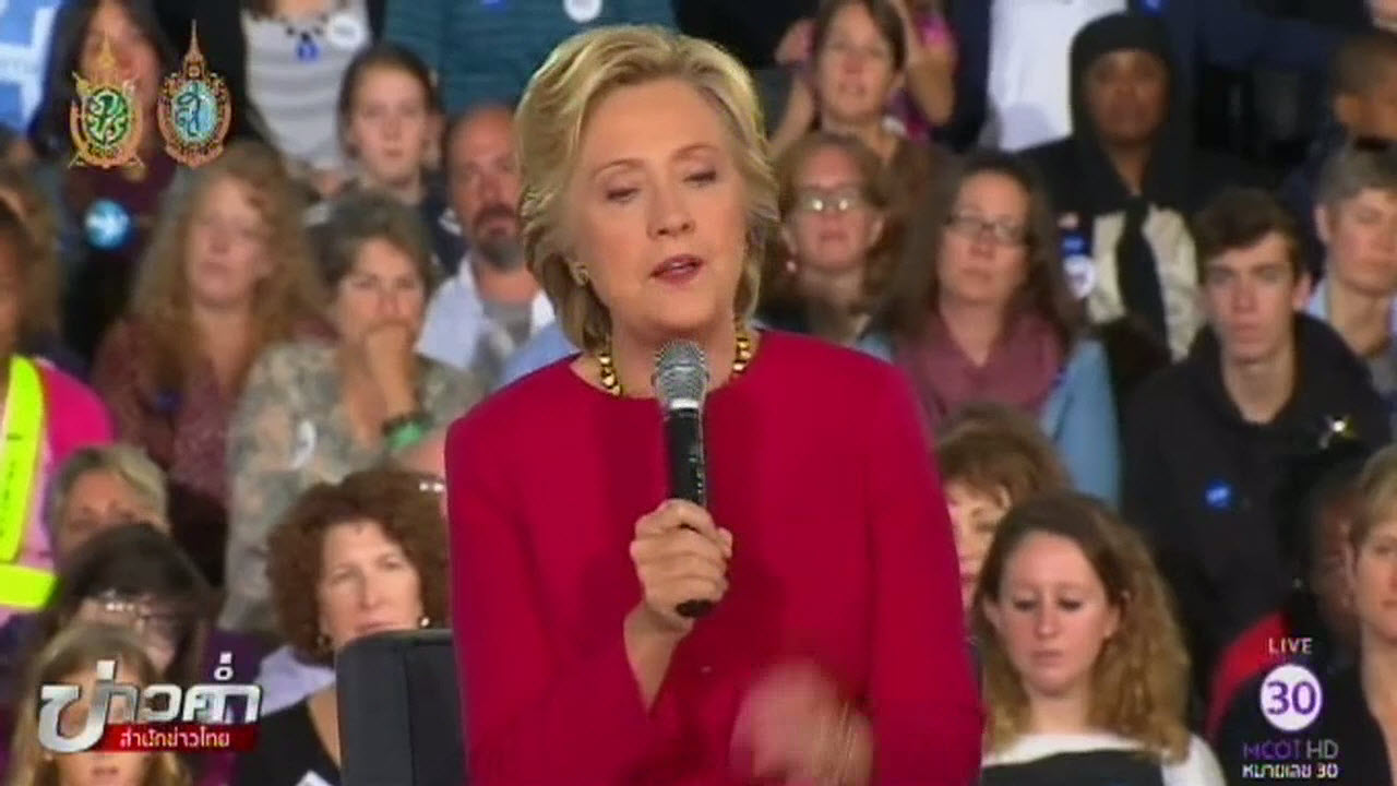 ส่วนนางฮิลลารี คลินตัน มุ่งหาเสียงเจาะฐานเสียงผู้หญิงในรัฐเพนซิลเวเนีย โดยเธอบอกกับกลุ่มผู้หญิงว่าโดนัลด์ ทรัมป์ ดูถูกและไม่ให้เกียรติผู้หญิงอย่างมาก โดยจะเห็นได้กรณีที่เขา กำลังมีปัญหากับอลิเซีย มาชาโด อดีตนางงามจักรวาล เชื้อสายเวเนซุเอลาที่เพิ่งได้รับสถานะภาพพลเมืองสหรัฐ หลังทรัมป์เคยเรียกเธอว่ามิสพิกกี้ เพื่อทำให้เธอได้อาย หลังเธอมีน้ำหนักตัวเพิ่มขึ้นมากหลังการประกวด ส่วนนางมิเชล โอบามา สตรีหมายเลข 1 ของสหรัฐ ก็ไปช่วยนางฮิลลารีหาเสียงที่รัฐนอร์ทแคโรไลนา โดยนางมิเชลบอกว่า เธอและสามีบารัค โอบามา พร้อมลูกสาวทั้ง 2 คน กำลังจะเก็บของออกจากทำเนียบขาว แต่ก็สบายใจว่า นางฮิลลารี คลินตัน จะมาทำหน้าที่แทนสามีของเธอได้อย่างเหมาะสมยิ่ง.-สำนักข่าวไทย