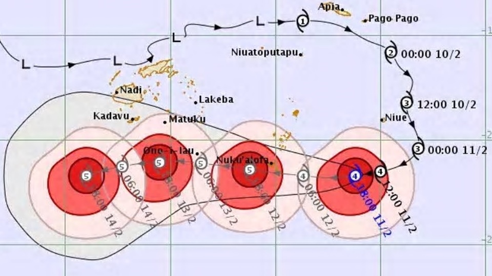 นูกูอาโลฟา 12 ก.พ.- ตองกา ประเทศหมู่เกาะในมหาสมุทรแปซิฟิกประกาศสถานการณ์ฉุกเฉินในวันนี้ เพราะไซโคลนที่จะขึ้นฝั่งโดยตรงมีแนวโน้มจะทวีกำลังขึ้นเป็นระดับ 5 ซึ่งเป็นระดับสูงสุด