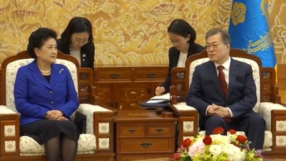 ประธานาธิบดีมุนกล่าวระหว่างพบสนทนาในวันนี้กับนางหลิว เหยียนตง รองนายกรัฐมนตรีจีนที่เป็นตัวแทนจีนในพิธีปิดโอลิมปิกฤดูหนาวพย็องชังว่า สหรัฐควรลดเกณฑ์เงื่อนไขการเจรจากับเกาหลีเหนือ ขณะที่เกาหลีเหนือก็ต้องแสดงให้เห็นว่าตั้งใจที่จะปลดนิวเคลียร์ ทั้งสองประเทศควรนั่งลงเจรจากันโดยเร็วที่สุดเท่าที่เป็นไปได้ ขอให้จีนช่วยทำให้สิ่งนี้เป็นจริง