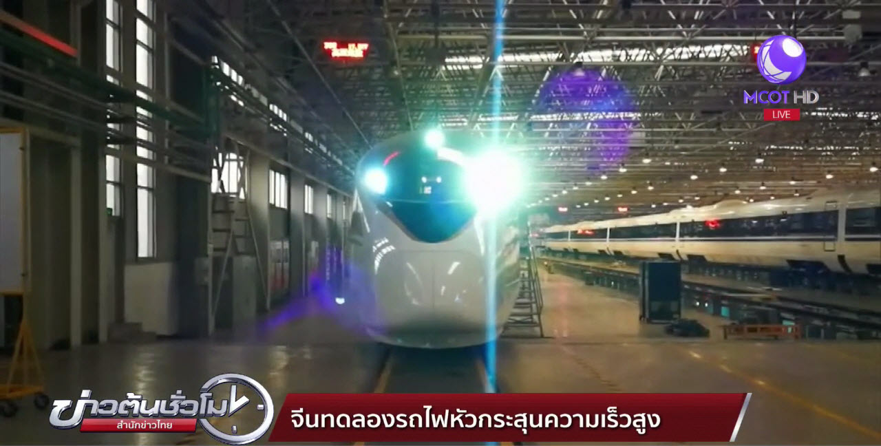 จีน 11 มี.ค.-จีนเริ่มทดลองขบวนรถไฟโดยสารหัวกระสุนความเร็ว 350 กม./ชม. ขบวนใหม่ โดยมีทั้งหมด 16 ตู้ ความยาวเพิ่มขึ้นเป็น 415 เมตร รองรับผู้โดยสารได้ 1,100 คน