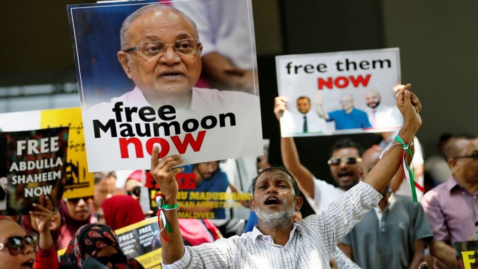 ฝ่ายต่อต้านมัลดีฟส์ออกแถลงการณ์ที่กรุงโคลัมโบของศรีลังกาเมื่อวันเสาร์ว่า นักเคลื่อนไหวหลายพันคนหลั่งไหลออกไปชุมนุมในกรุงมาเลของมัลดีฟส์ตั้งแต่คืนวันศุกร์ล่วงเข้าเช้าวันเสาร์ โดยไม่สนใจคำสั่งห้ามประท้วงของประธานาธิบดียามีน และไม่หวาดกลัวทหารตำรวจที่ใช้ทั้งสเปรย์พริกไทยและแก๊สน้ำตาหวังสลายฝูงชน จำนวนผู้ประท้วงเพิ่มขึ้นอย่างรวดเร็วในเช้าวันเสาร์ ถือเป็นการชุมนุมต่อต้านประธานาธิบดียามีนครั้งใหญ่ที่สุดนับตั้งแต่มีการประท้วงลักษณะเดียวกันในวันแรงงานปี 2558 ฝ่ายต่อต้านอ้างว่ามีผู้ถูกจับกุม 141 คน และมีสมาชิกรัฐสภารวมอยู่ด้วย 3 คน ด้านตำรวจยืนยันว่า มีผู้ถูกจับกุม 139 คน เป็นสตรี 26 คน