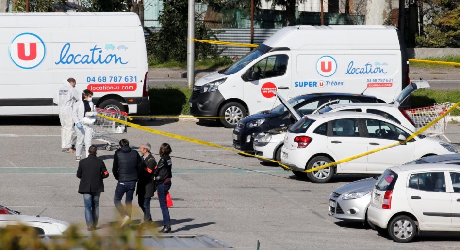 ประธานาธิบดีมาครง กล่าวด้วยว่า ประเทศฝรั่งเศสเผชิญกับการโจมตีของกลุ่มไอเอส สำหรับมือปืนรายนี้มีอายุ 25 ปี เป็นนักค้ายาเสพติดรายย่อย มีประวัติอาชญากรรมเล็กน้อย และกำลังถูกติดตามจากเจ้าหน้าที่ เนื่องจากมีความเป็นไปได้ว่าจะเป็นกลุ่มมุสลิมแนวนิยมสุดโต่ง เขาก่อเหตุกราดยิงในสถานที่ 3 แห่ง ก่อนมาจับตัวประกันที่ซูเปอร์มาร์เก็ตแห่งหนึ่งในเมืองแทร์เบส์ จนถูกตำรวจยิงเสียชีวิต