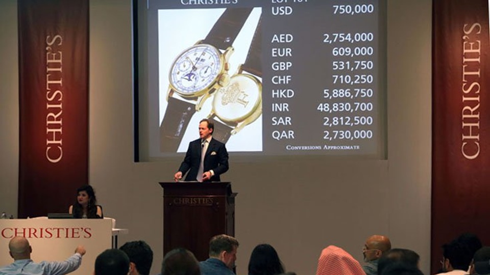 ดูไบ 27 มี.ค.- นาฬิกาปาเต็ก ฟิลิปป์ที่เคยเป็นของสมเด็จพระราชาธิบดีฟารูกแห่งอียิปต์ มีผู้ประมูลไปในราคา 912,500 ดอลลาร์สหรัฐ (ราว 26.41 ล้านบาท) ทำลายสถิตินาฬิกาที่มีราคาประมูลสูงสุดในตะวันออกกลาง