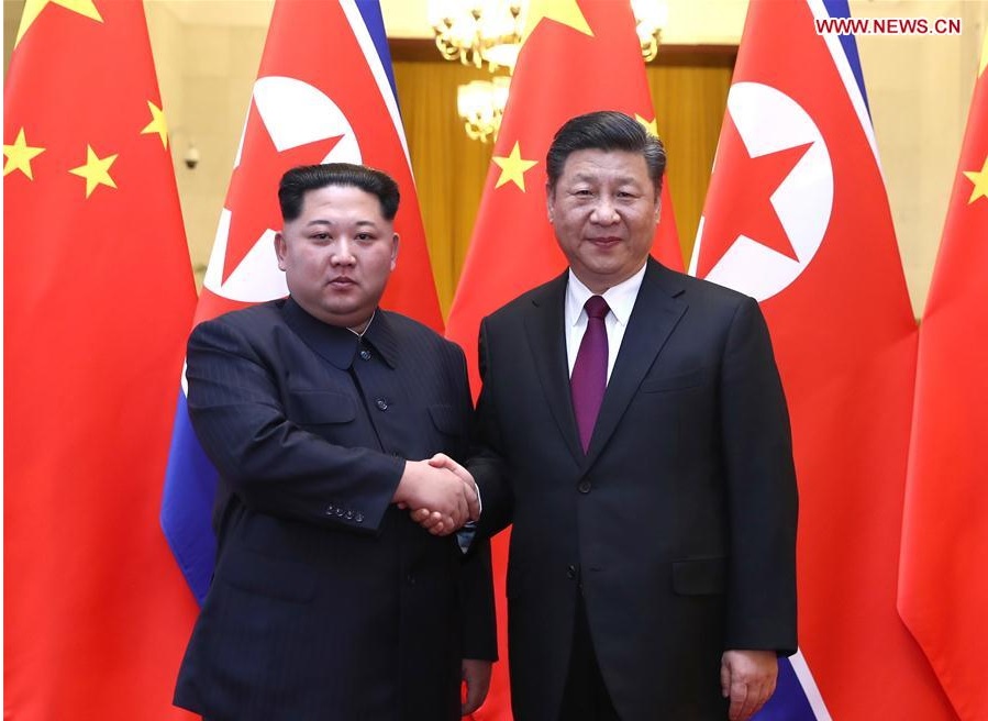 สำนักข่าวซินหัวลงภาพถ่ายนายคิมและประธานาธิบดีสี จิ้นผิง ของจีน จับมือทักทายกัน โดยด้านหลังเป็นธงชาติของเกาหลีเหนือและจีน การเยือนครั้งนี้เป็นการเดินทางต่างประเทศครั้งแรกของนายคิมนับตั้งแต่เขาก้าวขึ้นเป็นผู้นำเกาหลีเหนือเมื่อปี 2554 ซินหัวยังรายงานด้วยว่า นายคิมได้กล่าวในระหว่างพูดคุยกับประธานาธิบดีสียืนยันว่า เกาหลีเหนือมีความประสงค์ที่จะเปิดการประชุมสุดยอดร่วมกับผู้นำหรัฐ ก่อนหน้านี้ มีกระแสคาดเดาเกี่ยวกับการเดินเยือนกรุงปักกิ่งของนายคิม หลังจากที่รถไฟที่บิดาของเขาเคยใช้ปรากฏอยู่ในกรุงปักกิ่ง รวมททั้งมีการวางกำลังเจ้าหน้าที่รักษาความปลอดภัยอย่างเข้มงวดและมีขบวนรถขนาดใหญ่ สำนักข่าวยอนฮัพ ของเกาหลีใต้ รายงานว่า นายคิมเดินทางเยือนกรุงปักกิ่งพร้อมด้วยนางรี โซล จู ภรรยาของเขา และรายงานด้วยว่า ประธานาธิบดีสี ได้ตอบรับคำเชิญของนายคิม ที่จะไปเยือนเกาหลีเหนือด้วย.-สำนักข่าวไทย