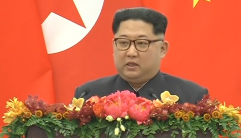 เคซีเอ็นเอรายงานว่า ผู้นำเกาหลีเหนือได้กล่าวกับผู้นำจีนในงานเลี้ยงที่กรุงปักกิ่งว่า ไม่ต้องสงสัยเลยว่าการเยือนต่างประเทศครั้งแรกของเขาจะต้องเป็นเมืองหลวงของจีน เพราะเป็นหน้าที่ตามธรรมเนียมของเขาในฐานะผู้ที่ควรเชิดชูและสานต่อความสัมพันธ์เกาหลีเหนือ-จีนจากรุ่นสู่รุ่น ประชาชนของสองประเทศได้สละชีวิตและเลือดเนื้อต่อสู้ร่วมกันมาหลายทศวรรษ ได้รู้ซึ้งว่าต่างมีชีวิตที่แยกจากกันไม่ได้ และได้ตระหนักว่าสันติภาพและเสถียรภาพภูมิภาคมีความสำคัญเพียงใดต่อประเทศเพื่อนบ้านทั้งสองที่มีเพียงสายน้ำขวางกั้น เขาขอให้คำมั่นว่าจะเสริมสร้างและยกระดับความสัมพันธ์ของสองประเทศอันเป็นมรดกล้ำค่าที่ส่งต่อมาจากคนรุ่นก่อน