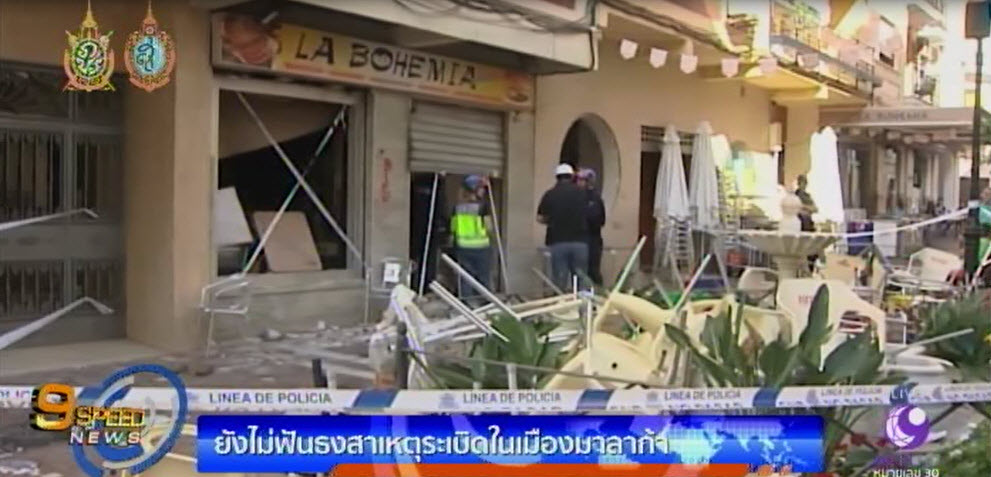 เจ้าหน้าที่สเปนยังคงตรวจสอบที่เกิดเหตุและเก็บหลักฐานบริเวณร้านคาเฟ่ โบฮีเมีย ในเมืองมาลากา แคว้นอันดาลูเซีย หลังเกิดเหตุระเบิดอย่างรุนแรงที่ร้านดังกล่าวเมื่อช่วงค่ำวันเสาร์ตามเวลาท้องถิ่น ทำให้มีผู้ได้รับบาดเจ็บอย่างน้อย 90 คน ในจำนวนนี้ 5 คนอาการสาหัส และจนถึงขณะนี้เจ้าหน้าที่ยังไม่ยืนยันว่าเหตุระเบิดเกิดจากแก๊สรั่วหรือไม่ แม้จะมีความเป็นไปได้สูงก็ตาม ขณะที่นายกเทศมนตรีเมืองมาลากา เผยทางการท้องถิ่นเตรียมเดินหน้าสอบสวนหาสาเหตุด้วยเช่นเดียวกัน.-สำนักข่าวไทย