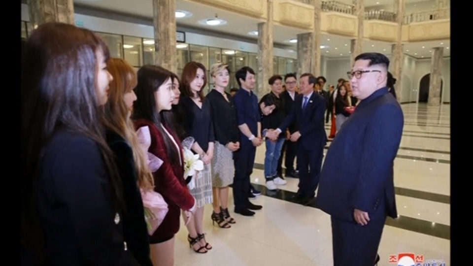 เปียงยาง 2 เม.ย.- สำนักข่าวเคซีเอ็นเอของทางการเกาหลีเหนือรายงานวันนี้ว่า นายคิม จองอึน ผู้นำประเทศประทับใจมากกับการแสดงของศิลปินเคป็อบจากเกาหลีใต้เมื่อวานนี้