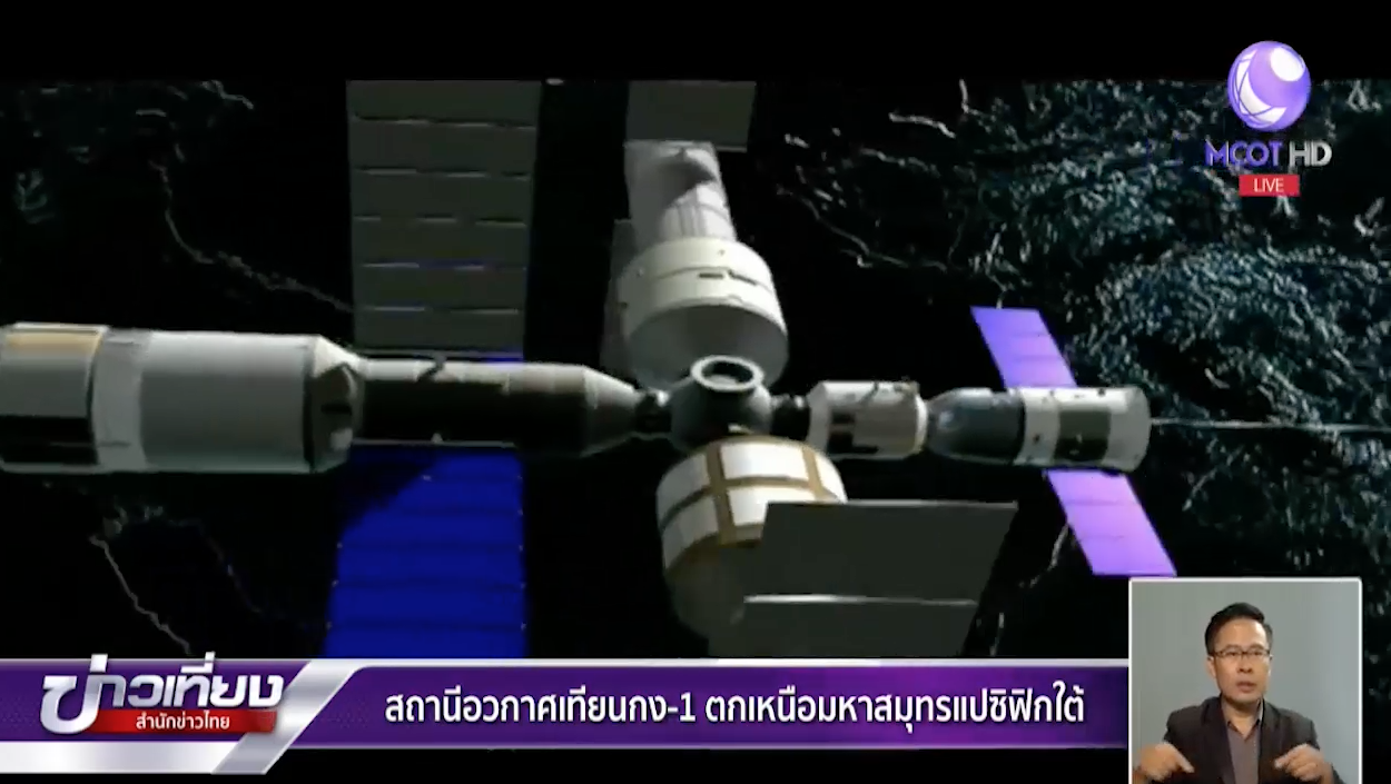 จีน 2 เม.ย.-สถานีอวกาศเทียนกง-1 ของจีนแตกเป็นเสี่ยง ขณะกลับเข้าสู่ชั้นบรรยากาศโลก ก่อนลุกไหม้แทบทั้งหมดเหนือบริเวณแปซิฟิกใต้