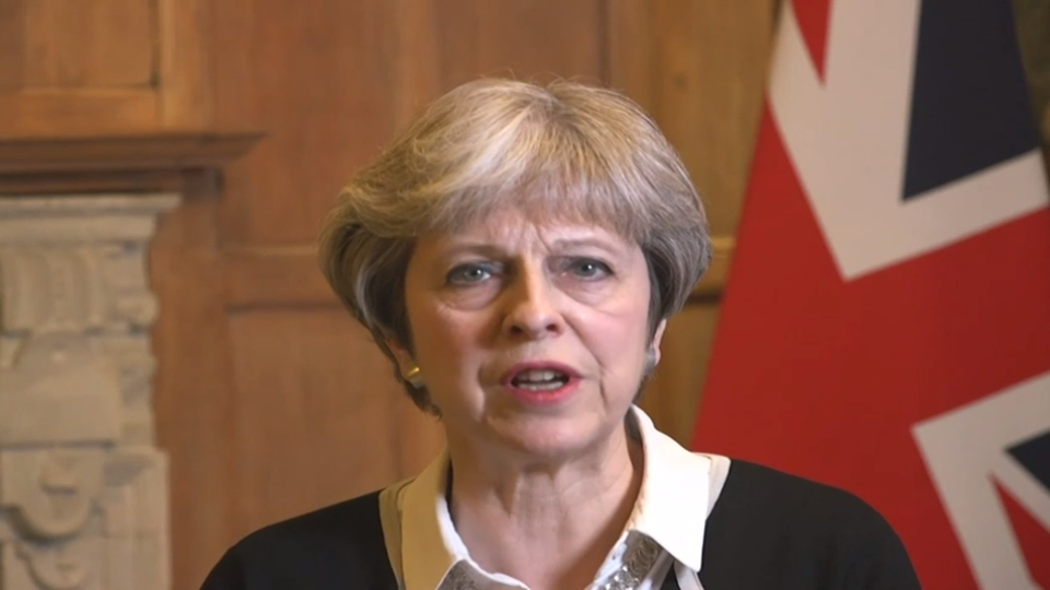 นายกรัฐมนตรีเมย์แถลงว่า ได้สั่งการให้กองกำลังอังกฤษยิงขีปนาวุธนำวิถีจากอากาศสู่พื้นแบบแม่นยำไปลดระดับความสามารถด้านอาวุธเคมีของซีเรีย เพราะไม่มีทางเลือกอื่นนอกจากต้องใช้ปฏิบัตการทางทหาร เป็นการโจมตีร่วมกับสหรัฐและฝรั่งเศสแบบจำกัดและมีเป้าหมายเพื่อให้มีพลเรือนสูญเสียน้อยที่สุด ปฏิบัติการครั้งนี้ไม่ใช่การแทรกแซงสงครามกลางเมืองซีเรียและไม่ใช่การเปลี่ยนรัฐบาลซีเรีย แต่ทำไปเพราะมีหลักฐานสำคัญรวมทั้งข่าวกรองว่า รัฐบาลประธานาธิบดีบาชาร์ อัลอัสซาดของซีเรียใช้อาวุธเคมีในเมืองดูมาเมื่อวันเสาร์ที่แล้วที่สังหารผู้คนไปถึง 75 คน โดยมีเด็กรวมอยู่ด้วย