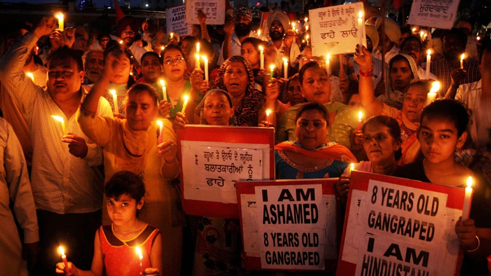 ตำรวจเผยว่า เด็กหญิงวัย 8 ขวบอยู่ในชุมชนเร่ร่อนในป่าของรัฐชัมมูและกัศมีร์ เธอถูกวางยาและกักตัวไว้ข่มขืนในวัดฮินดูแห่งหนึ่งนานร่วมสัปดาห์ ก่อนถูกรัดคอและขว้างด้วยก้อนหินจนเสียชีวิต คดีนี้สร้างความโกรธแค้นไปทั่วประเทศเพราะเรื่องเกิดมาหลายเดือน แต่เจ้าหน้าที่เพิ่งส่งเรื่องฟ้องกลุ่มผู้ต้องหาเมื่อสัปดาห์ก่อน มีเสียงครหาว่า เป็นหนึ่งในแผนขับไล่ชุมชนเร่ร่อนออกจากอำเภอหนึ่งในรัฐนี้ เพราะเป็นรัฐเดียวที่มีประชากรส่วนใหญ่เป็นมุสลิม ขณะที่ชาวอินเดียส่วนใหญ่เป็นฮินดู หัวหน้ากลุ่มผู้ต้องหาเป็นข้าราชการวัยเกษียณที่ดูแลวัดฮินดู สถานที่กักขังเด็กหญิง ผู้ต้องหาอีกสองคนเป็นตำรวจที่ถูกกล่าวหาว่ารับสินบนเพื่อเตะถ่วงคดี ผู้พิพากษาเปิดไต่สวนแล้วสั่งเลื่อนไปเปิดพิจารณาคดีอีกครั้งเป็นวันที่ 28 เมษายน ขณะที่ศาลฎีกากำลังพิจารณาคำร้องของทนายความหญิงในคดีนี้ที่ขอให้ไต่สวนที่อื่น เพราะเธอถูกขู่เมื่อวันก่อนว่าจะถูกข่มขืนแล้วฆ่า