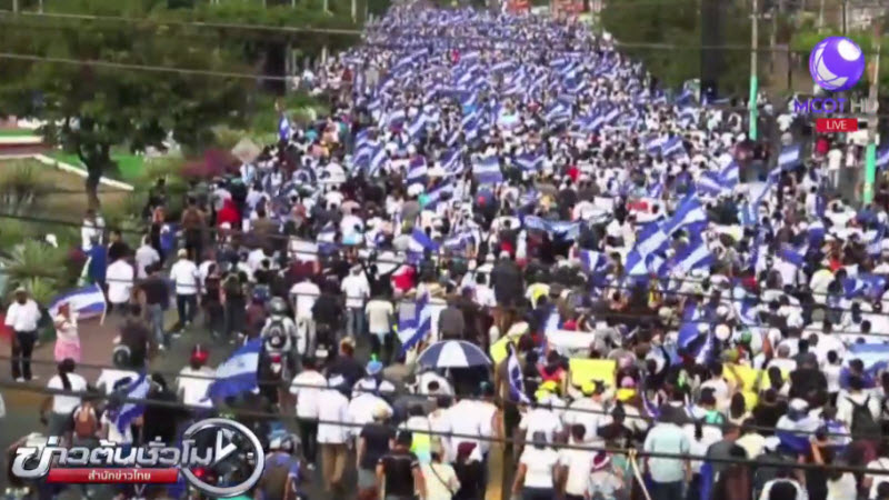 นิการากัว 24 เม.ย. – ชาวนิการากัวหลายหมื่นคนเดินขบวนประท้วงในกรุงมานากัว เรียกร้องให้เกิดสันติภาพ หลังจากการชุมนุมประท้วงต่อต้านแผนการปฏิรูปสวัสดิการสังคมของรัฐบาลในช่วงหลายวันที่ผ่านมา กลายเป็นการปะทะกันอย่างรุนแรง จนมีผู้เสียชีวิตเกือบ 30 คน และมีการปล้นสะดมร้านค้า จนประธานาธิบดีต้องประกาศยกเลิกแผนการปฏิรูปสวัสดิการสังคมแล้ว ส่วนที่บริเวณด้านหน้าเรือนจำ บรรดาครอบครัวของผู้ประท้วงที่ถูกจับกุม ต่างมารอฟังข่าวของบุตรหลาน. – สำนักข่าวไทย