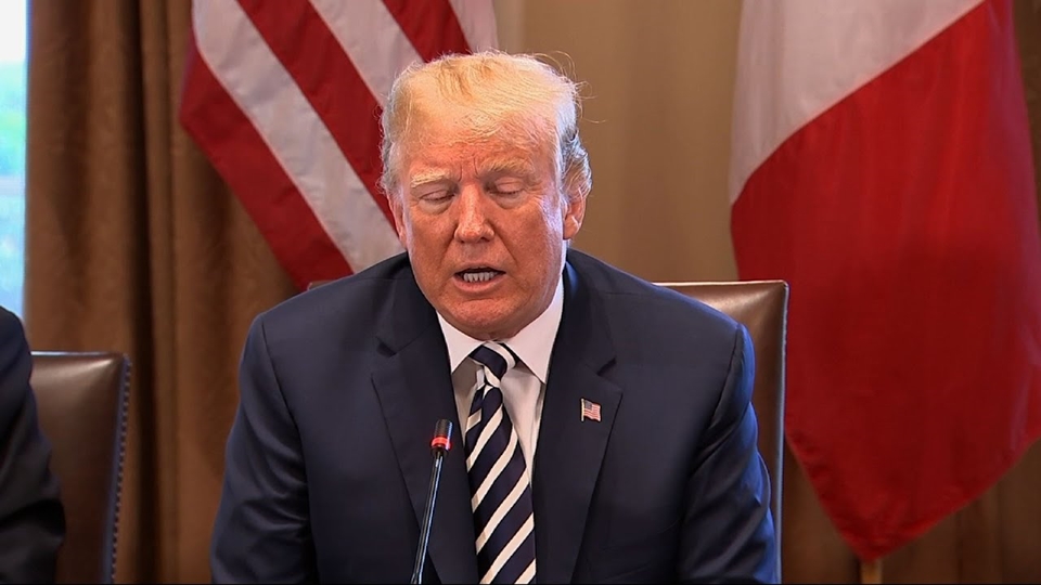 ประธานาธิบดีทรัมป์กล่าวที่ทำเนียบขาวระหว่างที่ประธานาธิบดีเอมานูว์เอล มาครงของฝรั่งเศสมาเยือนว่า สหรัฐและเกาหลีเหนือกำลังหารือกันด้วยดี เกาหลีเหนือแจ้งตรง ๆ ว่าอยากให้การประชุมสุดยอดเกิดขึ้นโดยเร็วที่สุด นับเป็นข่าวดีของโลก นายคิม จองอึนเป็นคนเปิดกว้างมาก ๆ ดูแล้วเป็นคนน่านับถืออย่างยิ่ง อย่างไรก็ดี เกาหลีเหนือยังไม่ได้ทำตามคำมั่นในหลายเรื่อง เขาพร้อมจะเดินออกจากที่ประชุมหากการเจรจาไม่สร้างสรรค์หรือเกาหลีเหนือไม่จริงใจ ต้องรอดูกันต่อไป อาจจะออกมายอดเยี่ยมหรือไม่ดีก็ได้ ผู้นำสหรัฐอ้างด้วยว่า รัฐบาลของเขาได้ดำเนินแข็งกร้าวจนสามารถบีบให้เกาหลีเหนือยอมเจรจา ทั้งการคว่ำบาตรและชักชวนให้พันธมิตรร่วมกดดัน