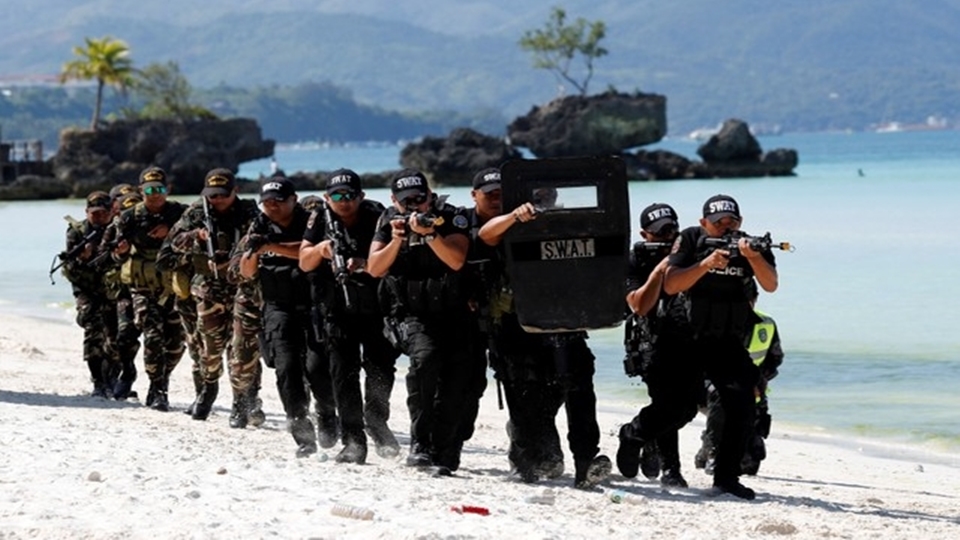 โบราไกย์ 25 เม.ย.- ตำรวจฟิลิปปินส์ซ้อมรับมือเหตุจลาจลในวันนี้ ก่อนที่จะปิดโบราไกย์ เกาะท่องเที่ยวชื่อดังเป็นเวลานาน 6 เดือนนับตั้งแต่วันพรุ่งนี้ตามคำสั่งของประธานาธิบดี