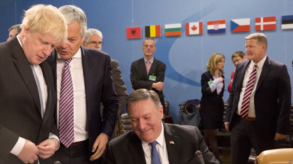 นายพอมเพโอ อดีตผู้อำนวยการสำนักข่าวกรองกลาง (ซีไอเอ) เริ่มภารกิจแรกในตำแหน่งรัฐมนตรีต่างประเทศด้วยการร่วมประชุมองค์การสนธิสัญญาแอตแลนติกเหนือ (นาโต) ที่กรุงบรัสเซลส์ของเบลเยียมเมื่อวันศุกร์ตามเวลาท้องถิ่น ส่วนในวันนี้จะเริ่มตระเวนเยือนพันธมิตรสหรัฐในตะวันออกลางเป็นเวลา 3 วันประกอบด้วยซาอุดีอาระเบีย อิสราเอลและจอร์แดนเพื่อแจ้งเรื่องจุดยืนของประธานาธิบดีโดนัลด์ ทรัมป์ต่อข้อตกลงนิวเคลียร์อิหร่านปี 2558 นายพอมเพโอยืนยันว่า ประธานาธิบดียังไม่ตัดสินใจเรื่องนี้ แม้มีการคาดการณ์กันอย่างกว้างขวางว่าเขาจะถอนตัวจากข้อตกลงด้วยการไม่ต่ออายุการยกเว้นมาตรการคว่ำบาตรที่จะหมดอายุในวันที่ 12 เดือนหน้า