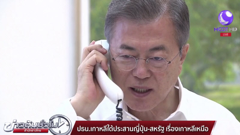 เกาหลีใต้ 29 เม.ย. – นายคิม อุย ยุม โฆษกทำเนียบประธานาธิบดีเกาหลีใต้ เปิดเผยว่า ประธานาธิบดีมุน แจ อิน ได้โทรศัพท์ไปหานายกรัฐมนตรีชินโซ อาเบะ ของญี่ปุ่น เพื่อแจ้งว่าได้นำความหวังของญี่ปุ่นที่จะฟื้นฟูความสัมพันธ์กับเกาหลีเหนืออีกครั้ง ไปแจ้งกับนายคิม จอง อึน ผู้นำเกาหลีเหนือแล้ว ซึ่งผู้นำเกาหลีเหนือมีท่าทีสนใจที่จะเปิดการเจรจากับญี่ปุ่น นอกจากนี้ ยังโทรศัพท์ไปหาประธานาธิบดีโดนัลด์ ทรัมป์ ผู้นำสหรัฐ โดยผู้นำทั้งสองเห็นพ้องกันว่า การประชุมสุดยอดระหว่างผู้นำสหรัฐกับผู้นำเกาหลีเหนือ ควรมีขึ้นโดยเร็วที่สุด. – สำนักข่าวไทย