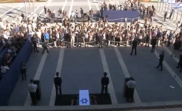 บุคคลสำคัญของอิสราเอลทั้งประธานาธิบดีริวเวน ริฟลิน นายกรัฐมนตรีเบนยามิน เนตันยาฮู ประธานสภาผู้แทนราษฎร ผู้นำฝ่ายค้านต่างวางพวงหรีดข้างโลงศพนายเปเรสที่มีธงชาติคลุมและตั้งไว้กลางลานหน้าอาคารรัฐสภา พิธีดำเนินไปอย่างเงียบ ๆ ไม่มีการกล่าวใด ๆ จากนั้นจึงได้เปิดให้ประชาชนเข้ามาเคารพศพตั้งแต่เวลา 09.00-21.00 น.วันนี้ตามเวลาอิสราเอล ช้ากว่าไทย 4 ชั่วโมง โดยให้อยู่ในระยะห่าง 5 เมตรและสามารถบันทึกภาพได้ ส่วนในวันพรุ่งนี้จะเป็นพิธีศพที่สุสานแห่งชาติในนครเยรูซาเล็ม โดยจะมีผู้นำทั่วโลกมาร่วม เช่น ประธานาธิบดีบารัค โอบามาของสหรัฐ ประธานาธิบดีฟรองซัวส์ โอลลองด์ของฝรั่งเศส เจ้าฟ้าชายชาร์ลส์ มกุฎราชกุมารอังกฤษ ประธานาธิบดีโยอาคิม เกาค์ของเยอรมนี