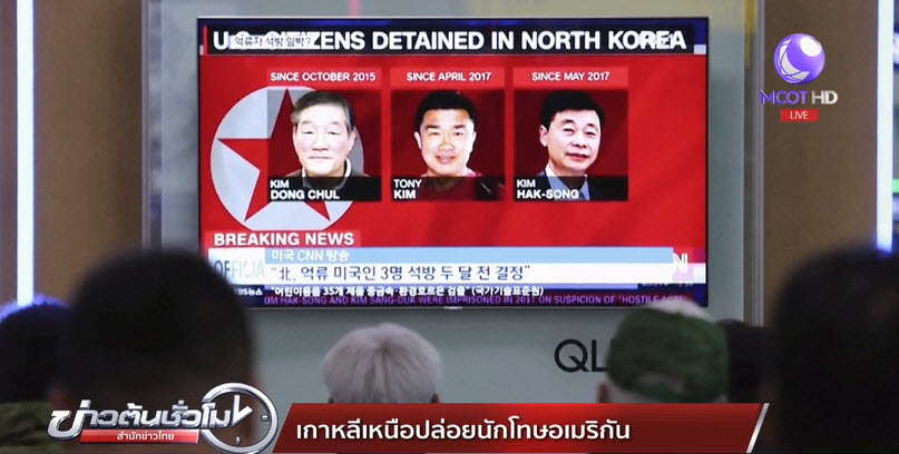 สหรัฐ 9 พ.ค.-ประธานาธิบดีโดนัลด์ ทรัมป์ ผู้นำสหรัฐ ทวิตข้อความระบุ พลเมืองชาวอเมริกัน 3 คนที่ถูกควบคุมในเกาหลีเหนือได้รับการปล่อยตัวเป็นอิสระแล้ว
