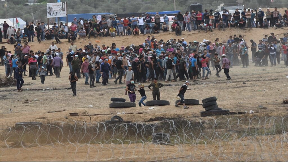 ชาวปาเลสไตน์อ้างว่า ทหารอิสราเอลสังหารชาวปาเลสไตน์ไปแล้ว 45 คน ตั้งแต่เริ่มการประท้วงเมื่อวันที่ 30 มีนาคม ส่วนวันนี้เครื่องบินทหารอิสราเอลนอกจากโปรยใบปลิวแล้วยังได้ทิ้งวัตถุติดไฟลงมาเผายางรถยนต์ที่ผู้ประท้วงนำมากองรวมกัน ชิงลงมือก่อนที่ผู้ประท้วงจะจุดไฟเผายางเหล่านี้แล้วกลิ้งไปยังรั้วพรมแดน อีกทั้งยังยิงแก๊สน้ำตาไปยังเต็นท์ที่ผู้ประท้วงปักหลักตามแนวพรมแดนด้วย.-สำนักข่าวไทย