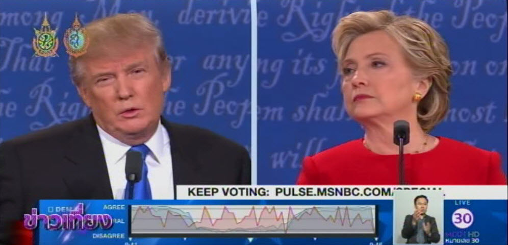 สหรัฐ 27 ก.ย. – การโต้คารมครั้งแรกระหว่าง นายโดนัลด์ ทรัมป์ ผู้สมัครชิงตำแหน่งประธานาธิบดีสหรัฐจากพรรครีพับลิกัน และนางฮิลลารี คลินตัน จากพรรคเดโมแครตเสร็จสิ้นลงแล้ว โดยปะทะคารมกันอย่างดุเดือดในประเด็นต่างๆ