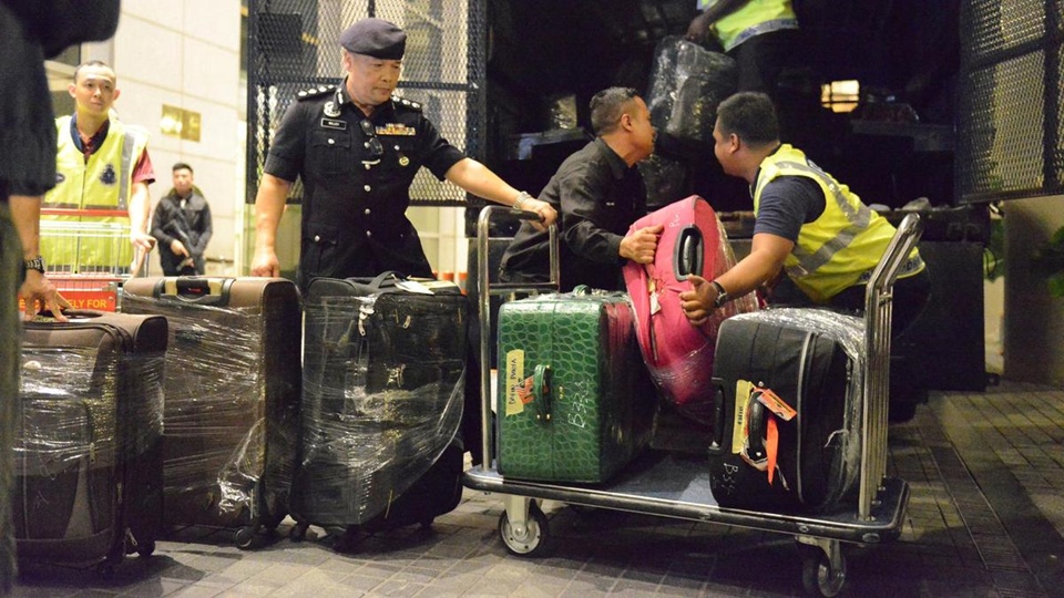 ตำรวจมาเลเซียแถลงเช้าวันนี้ว่า กระเป๋า 35 ใบที่ยึดจากที่พักแห่งหนึ่งของนายนาจิบ ข้างในมีเงินสดทั้งหมด 26 สกุลเงิน รวมมูลค่า 114 ล้านริงกิต (ราว 913 ล้านบาท) ส่วนกระเป๋าอีก 37 ใบที่ยึดได้ในที่พักเดียวกัน ข้างในมีนาฬิกาและอัญมณีที่ยังไม่มีการประเมินมูลค่า.- สำนักข่าวไทย