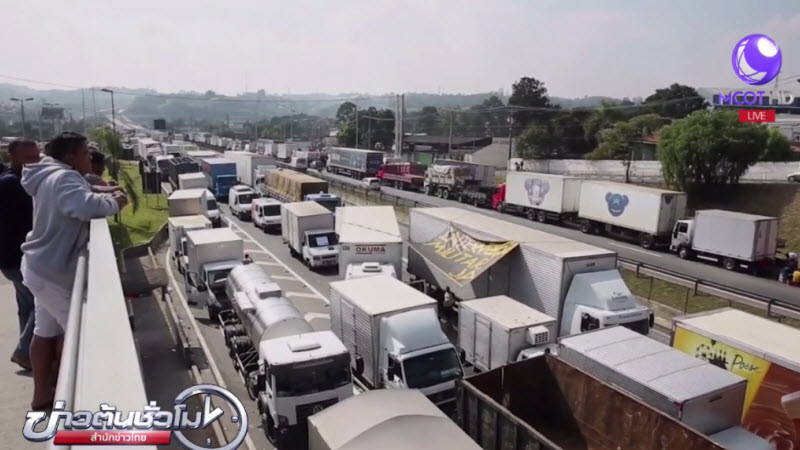 บราซิล 27 พ.ค. – ผู้ขับรถบรรทุกในบราซิลยังคงปิดถนนประท้วงน้ำมันดีเซลมีราคาแพงต่อไป แม้รัฐบาลขู่ว่าจะใช้กำลัง และปรับผู้ไม่ปฏิบัติตามคำสั่งอย่างหนักก็ตาม ตำรวจบราซิลได้เคลียร์ถนนสายต่างๆ เพื่อให้รถบรรทุกนำน้ำมันเข้าไปเติมตามปั๊มน้ำมัน รวมทั้งปั๊มของกองทัพในเมืองรีโอเดจาเนโร และเมืองเซาเปาโล ที่ไม่มีน้ำมันเหลืออยู่ ด้านประธานาธิบดีมิเชล เทเมอร์ สั่งให้ทหารใช้กำลังสลายการประท้วงได้หากจำเป็น ขณะที่สมาคมรถบรรทุกบราซิล ออกมาเรียกร้องให้สมาชิกยกเลิกการปิดกั้นถนน แล้วหันไปใช้วิธีการประท้วงวิธีอื่นแทน. – สำนักข่าวไทย