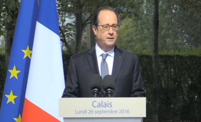ประธานาธิบดีโอลลองด์ซึ่งไปเยือนเมืองกาเลส์ในฐานะประธานาธิบดีเป็นครั้งแรกในวันนี้กล่าวขณะห้อมล้อมไปด้วยเจ้าหน้าที่รักษาความปลอดภัยว่า จะต้องรื้อค่ายผู้อพยพในเมืองนี้อย่างแน่นอน และจะให้ทางการอังกฤษมีส่วนร่วมในการช่วยเหลือด้านมนุษยธรรมที่ฝรั่งเศสกำลังดำเนินอยู่ในเมืองนี้ เขามีกำหนดเยี่ยมเยียนตำรวจ นักการเมืองท้องถิ่น องค์กรนอกภาครัฐ และแกนนำภาคธุรกิจ แต่จะไม่เดินทางไปยังค่ายอพยพดังกล่าวซึ่งถูกเรียกว่า ป่า มีผู้อพยพอาศัยอยู่ราว 7,000-10,000 คน ส่วนใหญ่มาจากซูดานและอัฟกานิสถานที่หวังกระโดดเกาะรถบรรทุกที่ขับมุ่งหน้าเข้าอุโมงค์ช่องแคบอังกฤษเพื่อไปอาศัยอยู่ในอังกฤษ