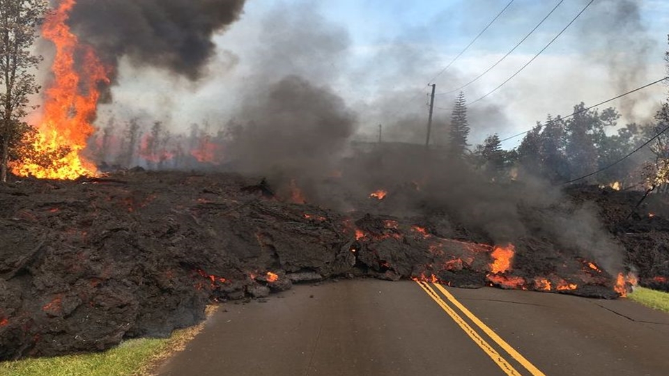 สำนักงานป้องกันภัยพลเรือนเทศมณฑลฮาวายแจ้งว่า ธารลาวากว้างเท่ากับสนามฟุตบอล 3 สนามไหลท่วมทางหลวงใกล้สี่แยกสำคัญชานชุมชนกาโปโฮ เป็นชุมชนริมทะเลที่สร้างขึ้นใหม่หลังภูเขาไฟคิลาเวปะทุใหญ่เมื่อปี 2503 ทำให้ชุมชนนี้และพื้นที่ใกล้เคียง ซึ่งมีบ้านเรือนรวมทั้งหมด 500 หลังถูกตัดขาดจากโลกภายนอกเพราะถนนทุกสายถูกลาวาท่วมหมด ทางการขอให้ประชาชนเร่งอพยพออกตั้งแต่วันพุธก่อนที่ลาวาจะไหลมาถึง กองกำลังพิทักษ์แห่งชาติ ตำรวจและเจ้าหน้าที่ดับเพลิงช่วยอพยพประชาชนกลุ่มสุดท้ายเมื่อคืนวันศุกร์และเข้าวันเสาร์ตามเวลาท้องถิ่น ยังไม่ทราบแน่ชัดว่ามีประชาชนไม่ยอมอพยพหลงเหลืออยู่จำนวนเท่าใด