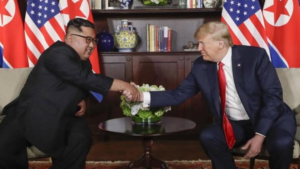 สิงคโปร์ 12 มิ.ย.- เว็บไซต์บรรษัทกระจายเสียงอังกฤษ (บีบีซี) รายงานถ้อยคำที่นายคิม จองอึน ผู้นำเกาหลีเหนือและประธานาธิบดีโดนัลด์ ทรัมป์ของสหรัฐกล่าวกับสื่อในช่วงก่อนการประชุมสุดยอดครั้งประวัติศาสตร์ที่สิงคโปร์