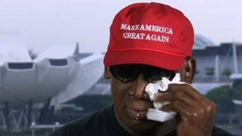 ร็อดแมนวัย 57 ปี สวมแว่นกันแดด สวมหมวกสีแดงมีคำ Make America Great Again ซึ่งเป็นหมวกของฝ่ายสนับสนุนทรัมป์ และสวมเสื้อยืดสีดำพิมพ์ลายสปอนเซอร์ที่เป็นเว็บไซต์ค้าคริปโตเคอร์เรนซี เขาให้สัมภาษณ์สดคริส คัวโม พิธีกรรายการโทรทัศน์ซีเอ็นเอ็นในช่วงที่คิม จองอึน และโดนัลด์ ทรัมป์พบหน้าและจับมือกันครั้งประวัติศาสตร์ในวันนี้ว่า เจ้าหน้าที่ทำเนียบขาวโทรศัพท์หาเขาก่อนการประชุมสุดยอดว่า ประธานาธิบดีภูมิใจในตัวเขา และได้พูดถึงคิมว่า เป็นเด็กโต ๆ ที่อยากเห็นโลกภายนอก จากนั้นร็อดแมนได้ร่ำไห้ออกมาอย่างไม่ปิดบังขณะเล่าว่า ถูกขู่เอาชีวิต กลับบ้านไม่ได้ ต้องหลบซ่อนตัวอยู่นาน 30 วัน