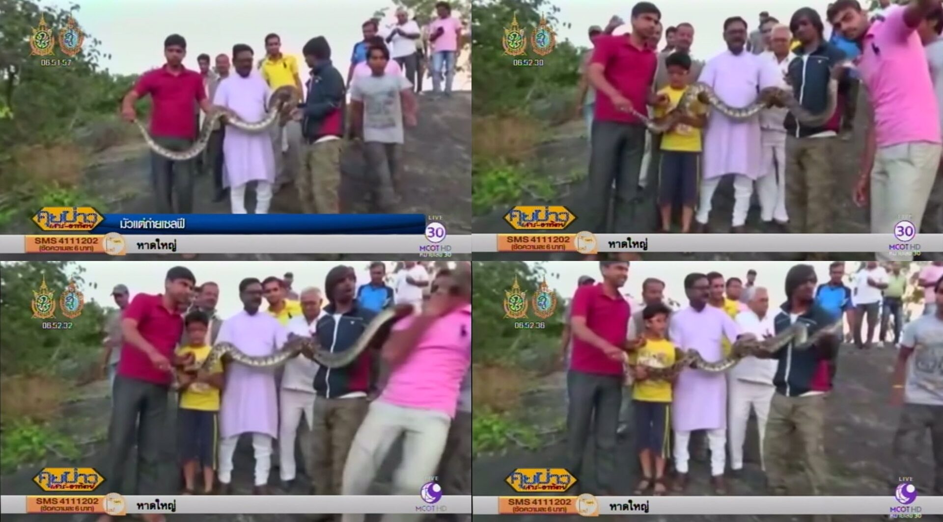 มีชาวบ้านคนหนึ่งที่ดูจะสนใจเจ้างูหลามตัวนี้เป็นพิเศษ เขาถ่ายเซลฟีกับงูหลามจากระยะไกลไปแล้วหนึ่งรอบ แต่เหมือนยังไม่หนำใจ เลยขอเข้าไปถ่ายเซลฟี่แบบใกล้ๆ อีก แต่ทันใดนั้น เจ้างูหลามที่เจ้าหน้าที่หลายคนช่วยกันอุ้มอยู่ ก็ฉกเข้าไปในที่ชายคนดังกล่าวอย่างจัง ทำให้เขาถึงกับกระโดดออกมาทันที ก่อนที่เจ้าหน้าที่จะนำงูออกไป ไม่มีรายงานว่าชายที่อยากเซลฟี่กับงูหลามตัวดังกล่าวบาดเจ็บมากน้อยแค่ไหน หลังจากถูกงูหลามกัด. – สำนักข่าวไทย