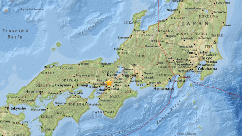 สำนักอุตุนิยมวิทยาญี่ปุ่นแจ้งว่า ศูนย์กลางแผ่นดินไหวอยู่ตอนเหนือของโอซากา แต่ไม่ได้เตือนภัยสึนามิ ขณะที่สำนักสำรวจธรณีวิทยาสหรัฐปรับตัวเลขแผ่นดินไหวลงเหลือ 5.3 ศูนย์กลางลึกลงไปใต้ดิน 15.3 เมตร ห่างจากเมืองทาคัตสึกิไปทางใต้ค่อนตะวันตกเฉียงใต้เพียง 1 กิโลเมตร เกิดขึ้นเมื่อเวลา 07.58 น.วันนี้ตามเวลาญี่ปุ่น ตรงกับเวลา 05.58 น.วันนี้ตามเวลาในไทย