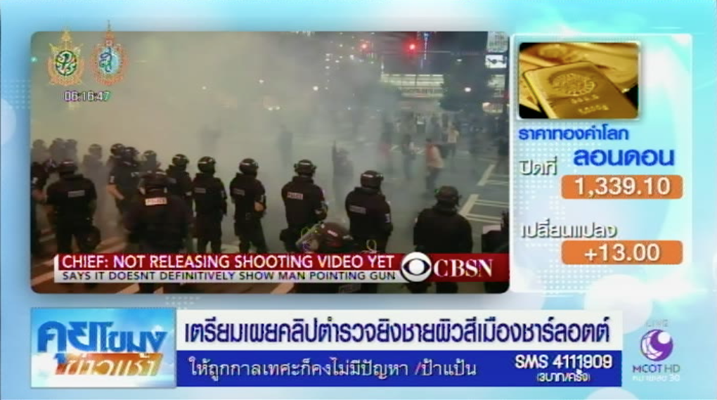 สหรัฐ 23 ก.ย.- เหตุประท้วงรุนแรงในรัฐนอร์ทแคโรไลนาของสหรัฐ สืบเนื่องจากกรณีตำรวจยิงสังหารชายผิวสี ทำให้ตำรวจต้องออกมาแถลงชี้แจงหลักฐานภาพวิดีโอ ซึ่งยังไม่สามารถสรุปเหตุการณ์ที่เกิดขึ้นได้