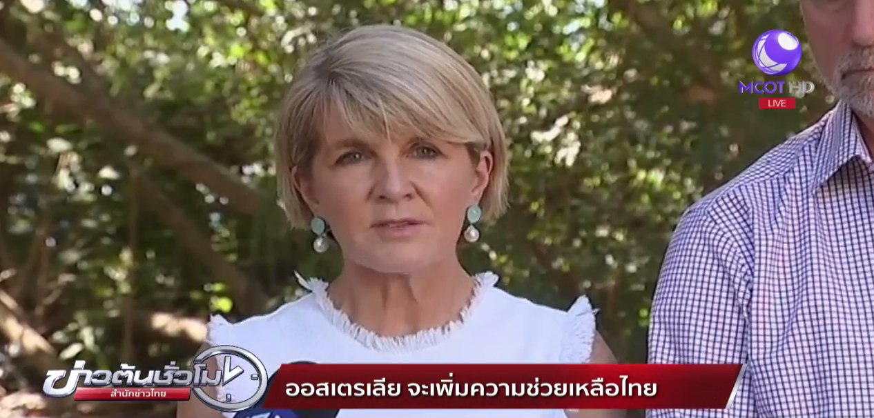 นางจูลี บิชอป รัฐมนตรีต่างประเทศออสเตรเลีย แถลงว่าเวลานี้ทางการกำลังจัดสรรความช่วยเหลือเพิ่มเติมแก่ไทย ในการช่วยนำตัวนักฟุตบอลทีมหมูป่าและโค้ชรวม 13 ชีวิต ออกมาจากถ้ำหลวง โดยรัฐบาลจะส่งทีมผู้เชี่ยวชาญด้านการฟื้นฟูภัยพิบัติและการวางแผนของกองทัพมาช่วยเหลือ ขณะที่ฝ่ายตำรวจก็จะส่งเจ้าหน้าที่เข้ามาสนับสนุนด้านการวางแผนและประสานงาน ซึ่งขณะนี้ทางการไทยต้องทำงานแข่งกับเวลาในการเร่งสูบน้ำออกจากถ้ำ เพื่อให้การนำตัวผู้ประสบภัยทั้งหมดออกมาอย่างปลอดภัยมากที่สุด.-สำนักข่าวไทย