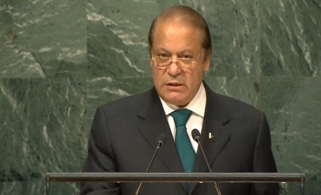 นายกรัฐมนตรีชารีฟกล่าวต่อที่ประชุมประจำปีสมัชชาใหญ่สหประชาชาติ (ยูเอ็น) ว่า ปากีสถานไม่สามารถนิ่งเฉยต่อการที่อินเดียเดินหน้าสั่งสมอาวุธมากมายอย่างที่ไม่เคยมีมาก่อน และจะดำเนินทุกมาตรการที่จำเป็นเพื่อรักษาศักยภาพในการปกป้องประเทศ ปากีสถานต้องการสร้างสันติภาพกับอินเดียและเสนอเจรจาครั้งแล้วครั้งเล่า แต่อินเดียกลับตั้งเงื่อนไขที่ไม่สามารถยอมรับได้ ทั้งที่การเจรจาเป็นประโยชน์กับทั้งสองฝ่ายและจำเป็นต่อการแก้ไขความขัดแย้ง โดยเฉพาะข้อพิพาทแคชเมียร์ นายกรัฐมนตรีชารีฟยังได้ย้ำข้อเรียกร้องให้ยูเอ็นและประชาคมโลกสอบสวนตามที่ปากีสถานกล่าวหาว่าทหารอินเดียในแคชเมียร์กระทำการอันโหดร้ายป่าเถื่อน ประชาคมโลกจะตกอยู่ในอันตรายเองหากเพิกเฉยต่ออันตรายจากความตึงเครียดในเอเชียใต้