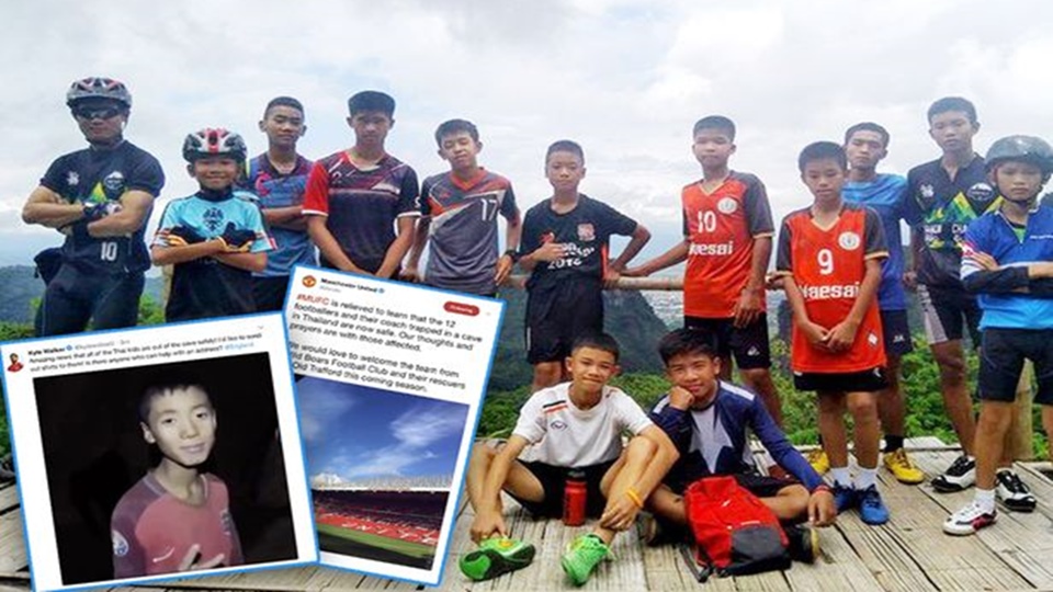 ลอนดอน 11 ก.ค.- วงการฟุตบอลทั่วโลกทั้งสหพันธ์ฟุตบอลนานาชาติ(ฟีฟ่า) สโมสรแมนเชสเตอร์ยูไนเต็ด และดาวเตะระดับโลกร่วมส่งแรงใจให้กับนักฟุตบอลเยาวชนทีมหมูป่าอะคาเดมีและโค้ชทั้ง 13 คนที่ติดอยู่ภายในถ้ำหลวง อ.แม่สาย จ.เชียงรายมา 17 วัน และเพิ่งได้รับปฏิบัติการช่วยเหลือออกมาได้ทั้งหมดเมื่อวานนี้
