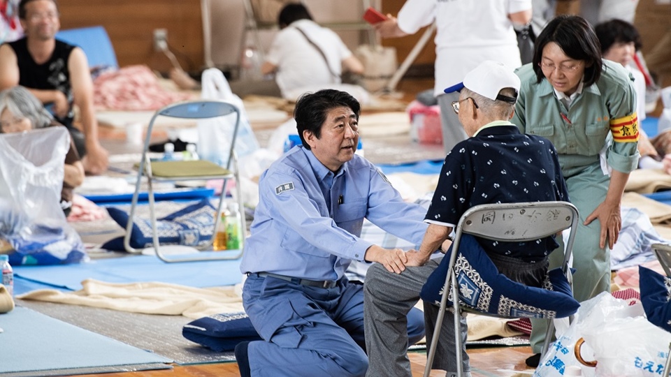 นายกรัฐมนตรีอาเบะซึ่งยกเลิกกำหนดการเยือนต่างประเทศในสัปดาห์นี้เพื่อติดตามรับมือสถานการณ์ภัยพิบัติครั้งใหญ่ ได้พบปะกับประชาชนหลายพันคนที่ยังคงอาศัยอยู่ในศูนย์พักพิงชั่วคราวระหว่างการลงพื้นที่ประสบอุทกภัยในเขตโอคายามะ ขณะที่ยังมีประชาชนอีกหลายสิบคนสูญหายและคาดว่ายอดผู้เสียชีวิตจากสภาพอากาศเลวร้ายที่สุดในญี่ปุ่นในรอบกว่า 30 ปีจะเพิ่มขึ้น นายโยชิฮิเดะ ซูกะ โฆษกรัฐบาลญี่ปุ่นกล่าวว่า จะมีการทบทวนแผนรับมือภัยพิบัติหลังจากมีข้อสังเกตว่าฝนตกครั้งนี้มีความรุนแรงมากกว่าที่เคยมีมาในรอบหลายปี ซึ่งรัฐบาลจะพิจารณาแนวทางเพื่อลดความเสี่ยงดังกล่าว .- สำนักข่าวไทย