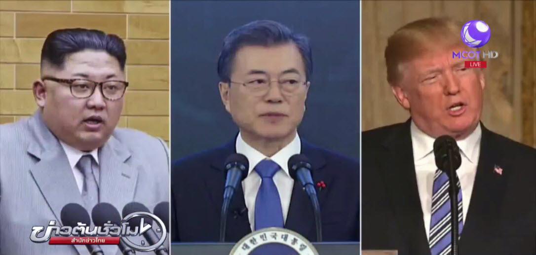 ประธานาธิบดีมุน แจ อิน ของเกาหลีใต้ เปิดเผยระหว่างการเดินทางเยือนสิงคโปร์ ว่าขณะนี้เกาหลีใต้ สหรัฐ และเกาหลีเหนือ กำลังเจรจาเพิ่มเติมเกี่ยวกำหนดเวลาและแนวทางในการลงนามสนธิสัญญาสันติภาพ ซึ่งจะเป็นเสมือนปฏิญญาทางการเมืองในการยุติสงครามเกาหลี แต่เกาหลีเหนือมีการเรียกร้องให้รับประกันความปลอดภัย ซึ่งประธานาธิบดีสหรัฐก็ตระหนักในเรื่องนี้ นายมุน เน้นย้ำว่า เป้าหมายของเกาหลีใต้คือการลงนามสนธิสัญญาสันติภาพภายในปีนี้ ตามที่ได้ตกลงกับผู้นำเกาหลีเหนือเอาไว้เมื่อเดือนเมษายนที่ผ่านมา.-สำนักข่าวไทย