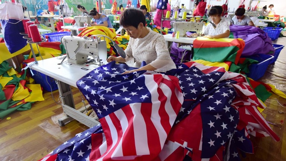 คนงานบริษัทผลิตธงในมณฑลอานฮุย ทางตะวันออกเฉียงใต้ของจีนกำลังเร่งเย็บธงต่าง ๆ ตามคำสั่งลูกค้า และหนึ่งในธงที่กำลังขายดีคือธงสีน้ำเงินขาวพิมพ์คำว่า Trump 2020: Keep America Great เจ้าของผู้ก่อตั้งบริษัทในปี 2557 เผยว่า ผลิตธงทุกประเทศเพื่อส่งออกเป็นหลัก แต่ช่วงนี้ขายธงหาเสียงทรัมป์ไม่ต่ำกว่า 10,000 ผืนต่อเดือนอย่างสบาย ๆ และไม่รู้ว่าผู้ซื้อสุดท้ายเป็นใคร