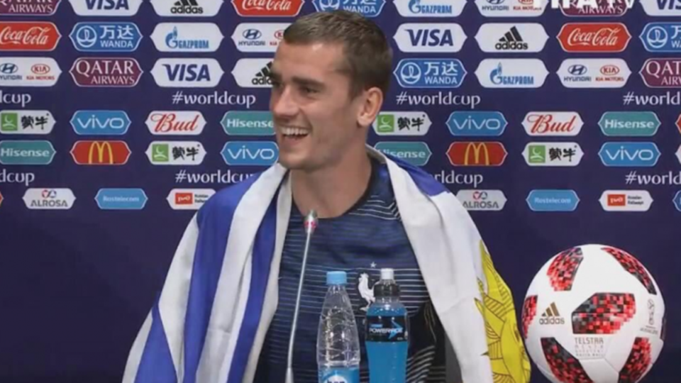 กรีซมันน์รับธงอุรุกวัยจากผู้สื่อข่าวมาคลุมในระหว่างการแถลงข่าว ภายหลังทีมชาติฝรั่งเศสเอาชนะโครเอเชีย 4-2 คว้าแชมป์ฟุตบอลโลก 2018 รัสเซียเมื่อวันอาทิตย์ และเผยถึงความชื่นชอบอุรุกวัยเป็นพิเศษเพราะได้รับการสนับสนุนที่ดีจากโค้ชชาวอุรุกวัยสมัยเพิ่งเริ่มเล่นฟุตบอล ท่าทีดังกล่าวทำให้ชาวอุรุกวัยพากันปลื้มใจ รวมทั้งประธานาธิบดีวาซเกซเขียนลงเว็บไซต์ทางการของเขาว่า ขอขอบคุณต่อท่าทีของกรีซมันน์และที่ห่มธงชาติอุรุกวัยในการแถลงข่าวหลังคว้าแชมป์ฟุตบอลโลก 2018 ที่มอสโก ผู้นำอุรุกวัยกล่าวว่า ได้รับแจ้งว่าดาวยิงฝรั่งเศสมีแผนจะมาเยือนอุรุกวัย ซึ่งเขาถือเป็นเกียรติที่จะได้ให้การต้อนรับและกล่าวขอบคุณเป็นการส่วนตัว .- สำนักข่าวไทย