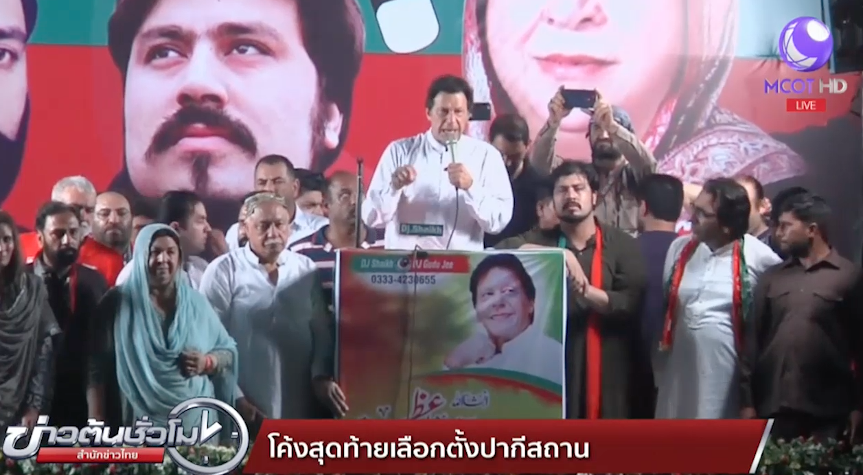 ปากีสถาน 24 ก.ค.- วันสุดท้ายของการหาเสียงเลือกตั้ง บรรดาผู้สมัครจากพรรคต่างๆในปากีสถานต่างเร่งหาเสียงอย่างเต็มที่ นายอิมราน ข่าน หัวหน้าพรรคพีทีไอ นำทัพขอคะแนนเสียง ที่เมืองลาฮอร์ พร้อมเรียกร้องประชาชนให้ออกมาใช้สิทธิในการเลือกตั้งทั่วไปที่จะมีขึ้นในวันพรุ่งนี้ โดยย้ำว่าถึงเวลาแห่งการเปลี่ยนแปลงแล้ว ทั้งนี้ ตลอดระยะเวลาของการรณรงค์หาเสียงเต็มไปด้วยการก่อเหตุรุนแรงซึ่งผู้สมัครจากพรรคการเมืองหลายพรรคตกเป็นเป้าของการโจมตี.-สำนักข่าวไทย