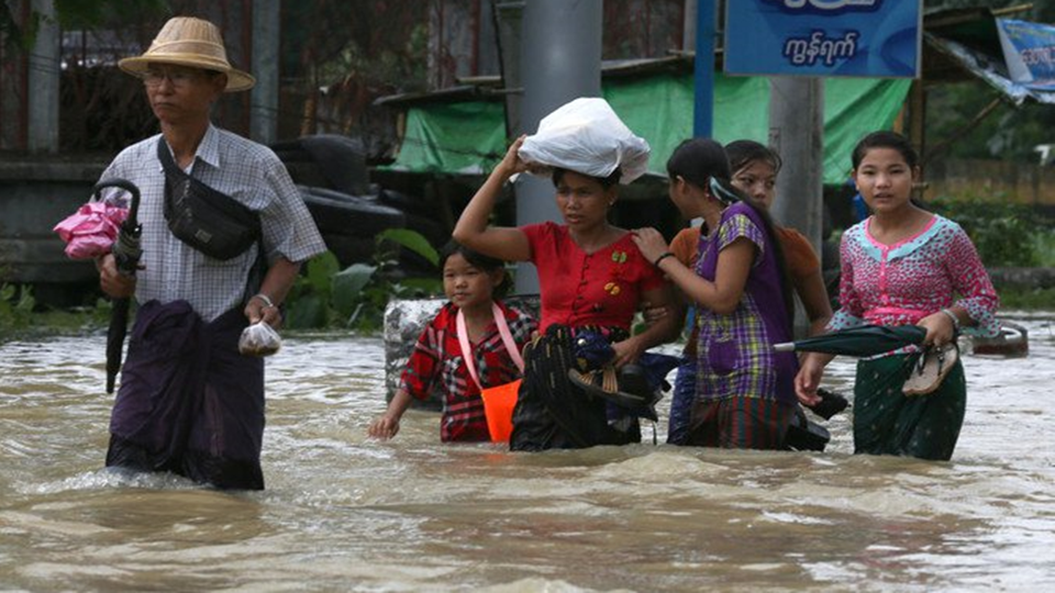 ฝนที่ถล่มภาคกลาง ภาคตะวันออก และภาคใต้ของเมียนมา ตั้งแต่สัปดาห์ก่อน ทำให้ทางหลวงหลายสายถูกตัดขาด สะพานพัง และพื้นที่จมน้ำเป็นวงกว้าง สำนักงานจัดการภัยพิบัติ แจ้งว่า มีผู้เสียชีวิตแล้ว 11 คน ในจำนวนนี้เป็นทหาร 3 นาย ที่เข้าไปช่วยกู้ภัยและหายไปในช่วงสุดสัปดาห์ และมีผู้ไร้ที่อยู่อาศัย 119,000 คน ทางสำนักงานกำลังจัดสรรข้าวสารอาหารแห้งและสิ่งจำเป็นให้แก่ผู้ประสบภัย ด้านรัฐมนตรีสวัสดิการสังคม กล่าวว่า ทางการพยายามประชาสัมพันธ์ให้ประชาชนเตรียมตัวเตรียมใจว่า น้ำท่วมจะไม่ลดลงในเร็ววันนี้