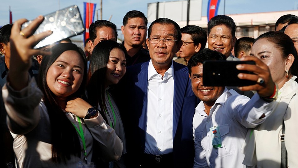 นายฮุนเซนวัย 65 ปีซึ่งบริหารประเทศมาเกือบ 33 ปีได้ถ่ายรูปเซลฟีกับกลุ่มผู้สนับสนุนและนั่งเรือไปพร้อมกับคณะภายหลังการเลือกตั้งทั่วไปในกัมพูชาเมื่อวันอาทิตย์ ซึ่งพรรคประชาชนกัมพูชา(ซีพีพี)ประกาศว่า ชนะการเลือกตั้งสมาชิกสภาทั้งหมด 125 ที่นั่งทำให้เกิดเสียงประณามจากกลุ่มสิทธิและชาติตะวันตก ภายหลังจากรัฐบาลปราบปรามฝ่ายตรงข้ามทั้งพรรคกู้ชาติกัมพูชา(ซีเอ็นอาร์พี) องค์กรนอกภาครัฐ นักเคลื่อนไหว และสื่อมวลชน นายกรัฐมนตรีฮุนเซนไม่ได้ใช้เวลานานในการปราศรัยวันนี้เหมือนเช่นทุกครั้ง โดยได้ล่องเรือไปจังหวัดกันดาลภายหลังจากพิธีเปิดท่าเรือในกรุงพนมเปญ สถานีโทรทัศน์ของทางการรายงานสดภารกิจนายกรัฐมนตรีฮุน เซนในวันนี้พร้อมกับเพลงประกอบยกย่องความสำเร็จของเขา .- สำนักข่าวไทย